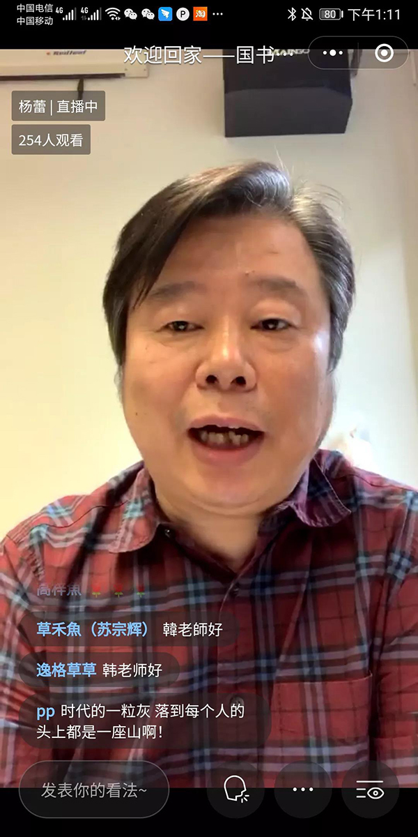 2020年5月9日下午13:00-14:00,艺术人文学院院长、党总支书记杨振宇教授以《湖山无恙,人文依旧》为题向全体学生直播开讲“返校第一课”。