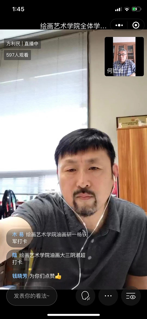 党总支书记、副院长方利民教授讲述“抗疫”这场人民战争在党中央的领导下正在逐步走向胜利,通过对中国抗疫战役的回顾,同学们加深了对习近平总书记提出的“道路自信、理论自信、制度自信和文化自信”的理解。通过对国际严峻的疫情形势的了解和我们国家为抗疫所付出的巨大代价提醒我们要理解政府的防控措施,配合学校的防控工作。强调我们要做到许江院长提出的四个“自”:自报,自保,自重,自强。在疫情中,绘画艺术学院同学积极参加学院的“众志赞歌”主题创作活动,大家踊跃创作作品,积极投稿,得到社会各界的好评。