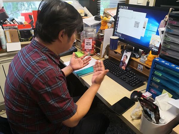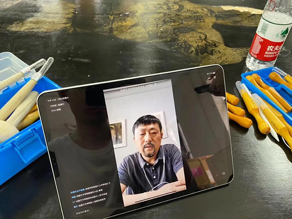 5月9日下午,中国画与书法艺术学院通过线上直播的方式,为返校学生上了“复学第一课”。党总支书记韩璐教授以“携手今日,共筑愿景”为主题,讲述了他在防疫期间的所思、所学与所得。讲授内容有对生命意义的启示,也有对艺术探索的新感悟,同时也与大家分享了一些读书札记心得。这既是一堂思政大课,也是一次动员大会。韩璐强调,大家首先要调整好心境,以积极向上的态度,直面即将来临的一切挑战。中国画与书法艺术学院学生通过网络视频的形式共同收看本次课程。