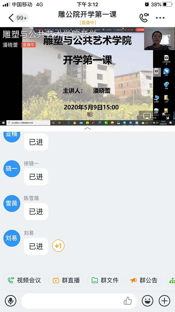 5月9日下午,绘画艺术学院为全体学生上了开学第一课,课程采取线上方式同步企业微信进行直播。课堂中,学院负责人分别就爱国主义教育、疫情的日常防范、本学期的教学安排等方面讲话。