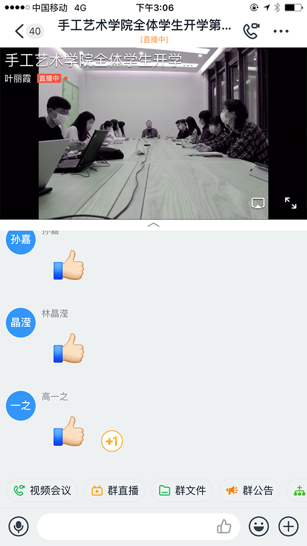 5月9日15点,手工艺术学院全体学生开学第一课举行,党总支书记、副院长李玉普教授以《特殊时期担负特殊责任》为题,从特别重要、特别责任、特别管理三方面,要求同学们既要高度重视安全,勇担责任,不信谣不传谣,又要严格服从管理,严格遵守学校各项行为规范。辅导员、班长、团支书到热成型楼三楼小会议室参加现场会议;班主任、其他同学在钉钉线上参加视频会议。