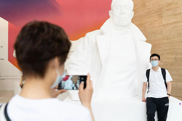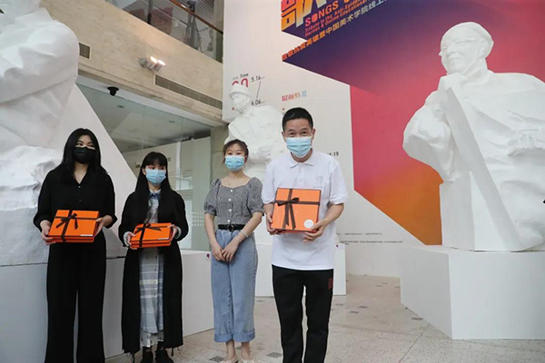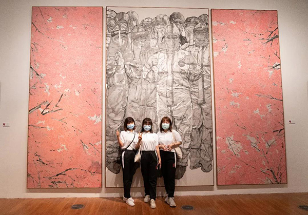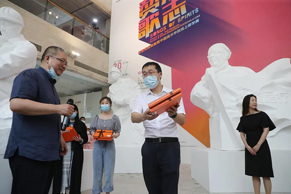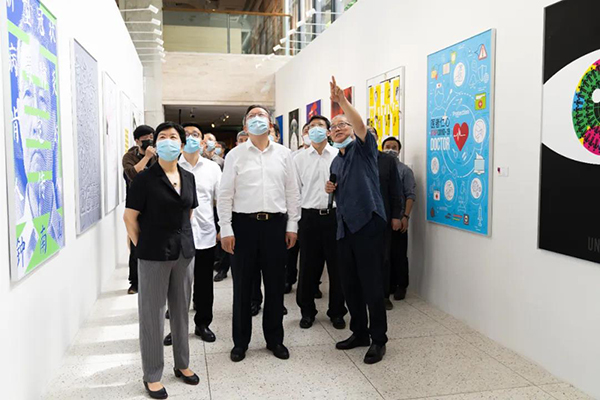 5月16日,在全校师生返校第二周,“众志赞歌——致敬抗疫英雄暨中国美术学院线上教学展览”开幕,浙江援鄂医疗队队员成为展览第一批参观者。