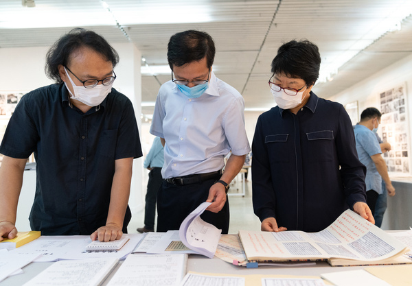 2020年5月27日,浙江省社科联党组书记、副主席郭华巍一行来我校调研并参观《众志赞歌——致敬抗疫英雄暨中国美术学院线下教学展》。中国美术学院党委书记钱晓芳、副院长高世名、沈浩及党委委员、党院办主任徐国强参加调研会。