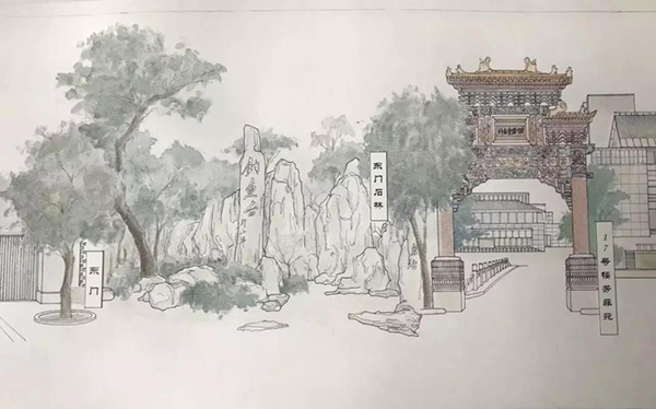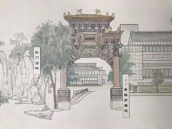 同学们结合新中国的外交风云,探究钓鱼台国宾馆的建筑形制与历史沿革,将隐含着的游目骋怀之路作为创作框架,以山水长卷形式再现了钓鱼台国宾馆中的各色景致,并在创作中学习前辈设计大师在处理建筑与景观、传统与现代、神圣与日常融合关系时所秉承的成熟理念与设计思路。