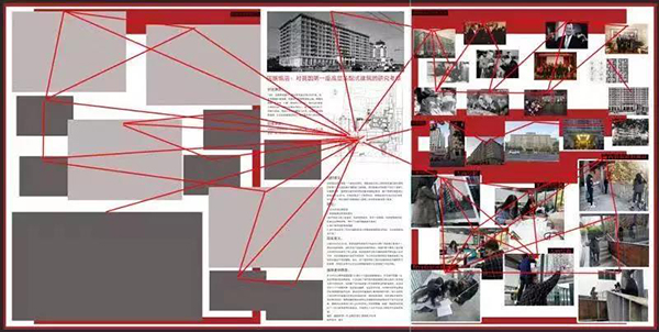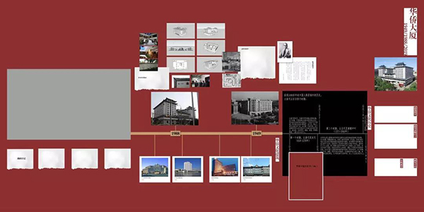 这里陈列的是建筑艺术学院师生对中国人民军事革命博物馆(简称军事博物馆)的学习认识。作为新中国“十大建筑”之一,军事博物馆是代表新中国军队建设与发展的标志性工程。其设计建造不仅反映了由苏联式建筑设计手法主导的时代特色,也培育了一处历久弥新的城市文化景观。同学们通过考察和研究发现:军事博物馆虽历经多次改扩建,但最初设定的庄严立面形象、绝无仅有的塔顶军徽、以及中轴对称的平面布局等因素却始终保持恒定。这种恒定不仅会使每一个参观者联想到人民军队的坚定和强大,也在北京城、乃至国家和民族的集体记忆深处培育了一处恒定的场所精神。基于此,同学们试图以线索合成的方式重新还原这一场所精神的成型过程,并在资料梳理和现场考察的过程中体味前辈设计大师在城市建筑营造中透露出的种种智慧。