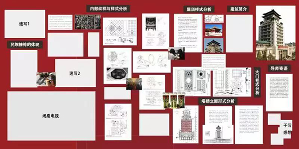 北京民族文化宫作为新中国“十大建筑”之一,是响应新中国民族政策、体现56个兄弟民族共同进步和繁荣的标志性建筑,是民族文化交流的中心。通过展示来自不同民族的精美文物,介绍各个民族的习俗传统,民族文化宫成为一座不可替代的全国性民族文化博物馆。因此,建馆之初,无论是建筑形式,还是功能设定,民族文化宫都鲜明的回应了民族性这一主题。同学们通过实地考察、现场采访和资料整理,了解了民族文化宫设计建造的来龙去脉和后续使用的发展演变,探究了前辈建筑师独具匠心的创作理念和设计手法,最终回到民族性这一主题,从建筑屋顶形态、立面形式、室内装饰纹样和文物陈设风格等形式问题入手,分门别类、分析整理,逐渐汇聚对民族文化宫的深入理解和详细认识。