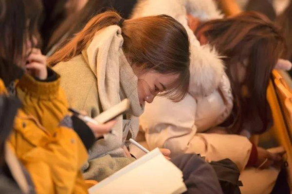 学生们认真听讲,将讲座的感悟记于读书笔记中