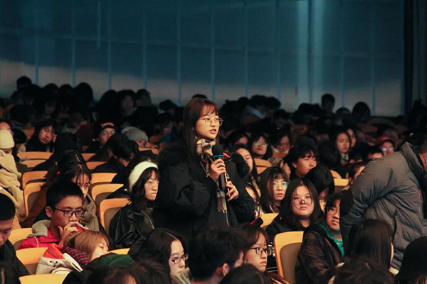 每位老师演讲后设现场提问环节,学生踊跃发言,通过和老师的直接交流互动解决了日常生活学习以及对于艺术追求的疑惑,现场气氛活跃融洽,体现了国美教育理念和师徒传承的和谐氛围。