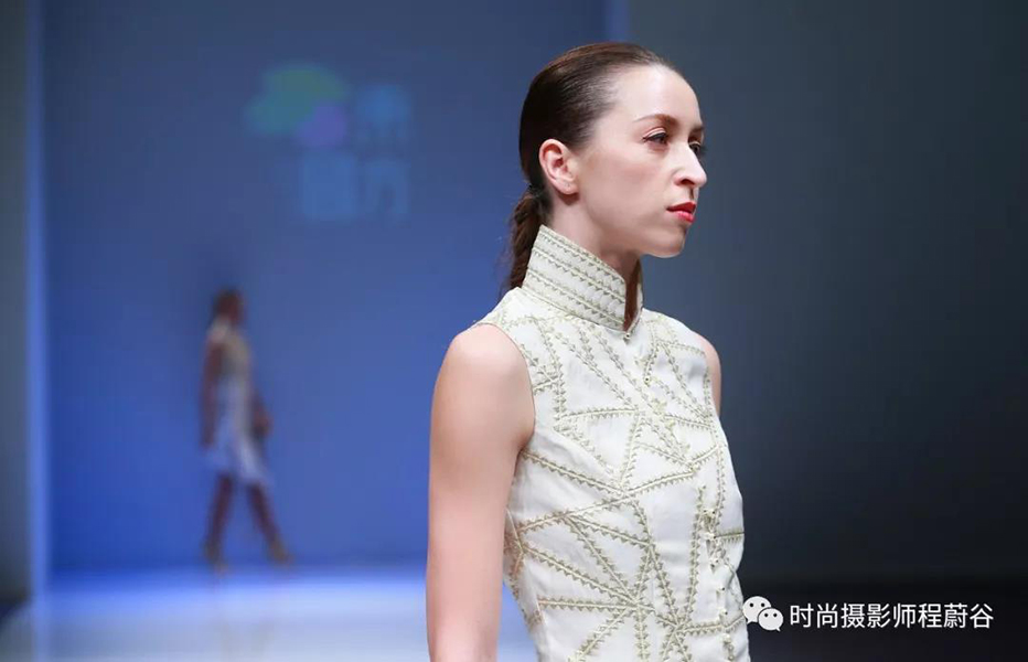 第三系列作品《「弧光」聚变》系列服装灵感来源于中国良渚文化,它是中华五千年文明的曙光,更是人类延绵不断的时尚基因。吴海燕以良渚玉器文化标志性「神人兽面」图案,玉器的尊贵、图案的神秘、造型的灵动、材质的精致等,与今天文化旅游及高品质发展的格局、时尚旗袍的流行、图形图案与纹样的创意、丝绸质感与高科技数码提花工艺共同演绎世界文化遗产的活化、传承与创新,用时尚引领的理念和方法,开拓超越时空的良渚文化与当代时尚「弧光」聚变。