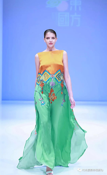 今年活动最大亮点是设立了「中国单元」。中国元素成为今年活动的主打内容。讲好中国故事,传播中国文化是设计师吴海燕的期望、责任与追求。近年来她带着以中国古老丝绸演绎中国当代文化的《东方丝国》作品应邀走进意大利、吉尔吉斯斯坦、希腊,此次迪拜已是第四站。