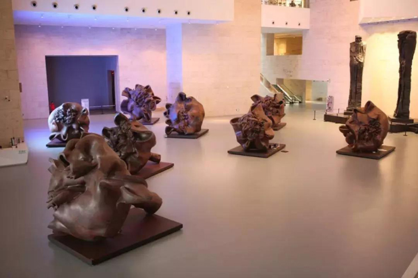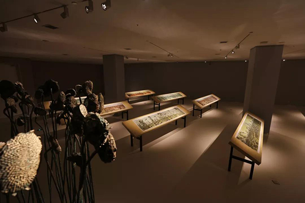「天涯·无断的地平线」展示了许江最新创作的十余幅布面油画作品《无断的地平线》,以及秀雅扶疏的雕塑《共生之二》。内蒙大青山的北川那无尽的缓坡上钉子般散落着熟褐色的葵,牵连着画家此起彼没、延绵不断的远望。这是心灵的远望,从中观照内心的辽远;这是历史的远望,从中折射出时间的潜流、身世和命运。