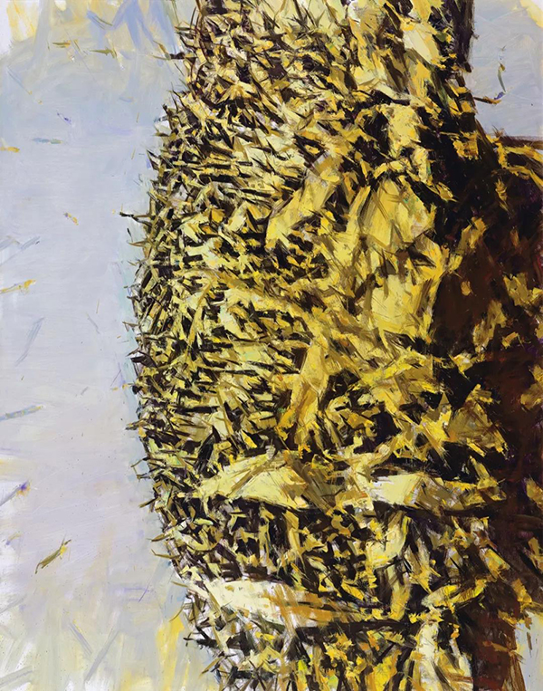 十六年来,许江投身葵与它的大地,苦心孤诣,一往情深,他将身心凝聚到葵这一物象,全力以赴,锲而不舍。他说:「以我格物,方知葵为何始终朝向东方,以物格我,方知此向阳之花原不在我心外」。许江格葵,处理的是自我、葵与世界三者的关系,用许江自己的话说,就是「磨砺不得已,格物致感知」。许江通过葵来认知世界,他的葵和世界共构,在他的葵的世界之中,花朵即是果实,葵盘即是大地,群葵即是众生,葵园即是山河。葵在山河岁月中反复衰朽又不断重生,天地四方聚拢而来,共当此在,映射出彼此的生命与存在。葵之于许江是一种自知自识,通过画葵、锻葵和写葵,他刻画出一代人的生命记忆,一代人的精神图谱。这一切,只因为葵是他的身世,他的心象,他的命运。许江和葵在每日现实的铸炼中,一点点转变,一点点生长,这里不仅有他的青春记忆,而且有真实的生命磨砺。