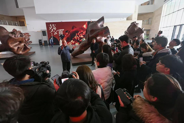 此前,来自北京、山东、浙江的近30位媒体记者已于12月20日下午齐聚山东美术馆,在许江的带领和精彩的讲解下,提前观赏并进一步了解此次展览,共话许江十六载格葵艺术生涯。