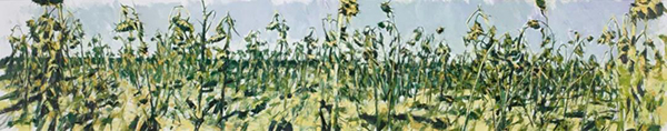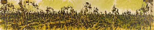 我十六年写葵、画葵,寄情不断,真心灌注。我到过无数的葵园,放牧葵园的四季,倾听葵园深处的呼唤。十六年的专情,半个中国的追访,只因为某种向阳花开的根性,让我们的身心在这里呼吸,在这里生长,在这里散发火红年代的激情和炙热,在这里磨砺生命的沧桑和坚强。在这里,我们的身体得以纵情开放,肆意吐纳。在这里,我们的生命中总有某种深情的东西被悄然提起,被反复辨识。于是,葵在我身上不断地开出花来,结出不同的生命之果。于是一片片水彩、一条条横卷,一面面葵墙,一座座葵山,在我的手中与我的生命一道成长。