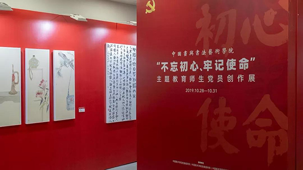自主题教育启动以来,中国画与书法艺术学院党总支充分结合专业特色,开展形式多样的课程思政和社团思政教育,在此过程中全体党员师生结合自身学习感受创作了一批优秀的作品。自展览征稿启事发出后,党员师生们积极参与,充分发挥自身的专业优势,将对本次主题教育学习的体会融入笔端,跃然纸上,创作出书画篆刻作品共计百余件。作品充分展现了师生们对于习总书记提出的“胸中有大义,心中有人民,肩头有责任,笔下有乾坤”的实际践行,深刻表现了作为新时代艺术工作者要从“初心”出发,将满腔的爱党、爱国赤诚情怀,转化为努力践行习近平新时代中国特色社会主义思想的前行动力。本次展览是中国画与书法艺术学院深入主题教育学习的新尝试,是中国画与书法艺术学院党员师生将“不忘初心、牢记使命”主题教育往深里走、往心里走、往实里走的集中体现,是师生对主题教育学习的交流平台。