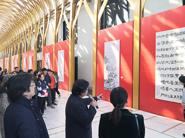 11月28日,中国美术学院党委委员、副院长沈浩,党委委员、宣传部部长傅巧玲等与中国画与国书艺术学院学生党支部的党员学生,赴梦想小镇开展主题党日活动。中国画与书法艺术学院教授张谷旻对展览进行导览,师生们还参观了梦想空间、金色长廊、仓前古镇、天使村等。党员学生们纷纷表示,被书画中所传递出来的浙江山水感动,为中国诗书所吸引,受到了一场生动的爱党、爱国教育。