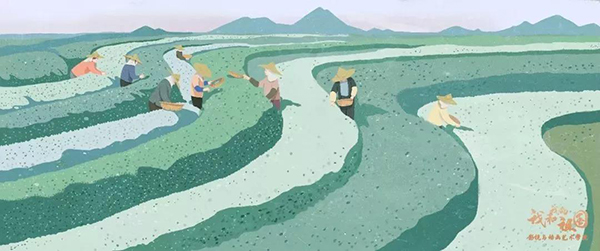 影视与动画艺术学院特色文化品牌项目 “艺语绘心”爱国主义教育专题绘本插图《青山绿水:一张叶子,富了一方百姓》编绘:刘允