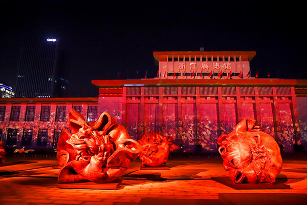 ▌一件为新中国七十年华诞的真挚献礼由浙江省文联、杭州市政府、中国美术学院联合主办,浙江省音乐家协会、浙江省舞蹈家协会合办,浙江省文化会堂、下城区人民政府、中国美术学院雕塑与公共艺术学院承办的「葵颂——大型雕塑影像展演」是以史诗剧场的形式向新中国七十华诞所作的一次真挚献礼。