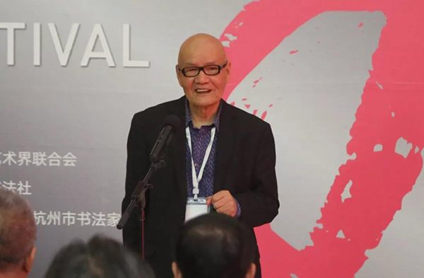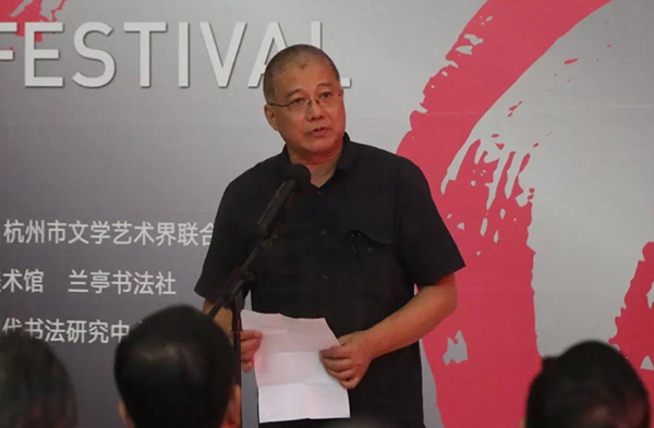 本次展览总策划,中国美院现代书法研究中心主任、市文联名誉主席、市书法家协会主席王冬龄教授讲话