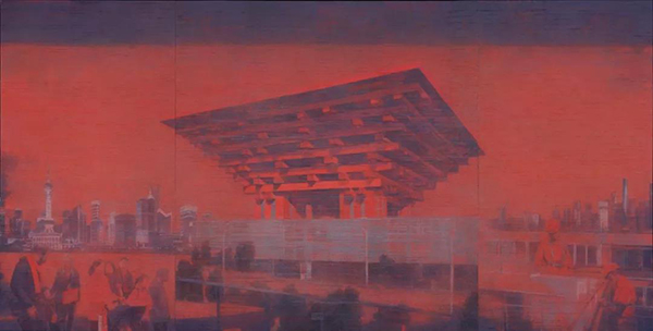 《共筑美好——上海世博会中国国家馆》黄庆 油画 280×560cm