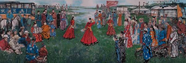 《乌兰牧骑》王剑武、盛天晔 中国画 246×715cm