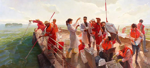 《我是河长——巡河》任志忠、金临 油画 200×480cm