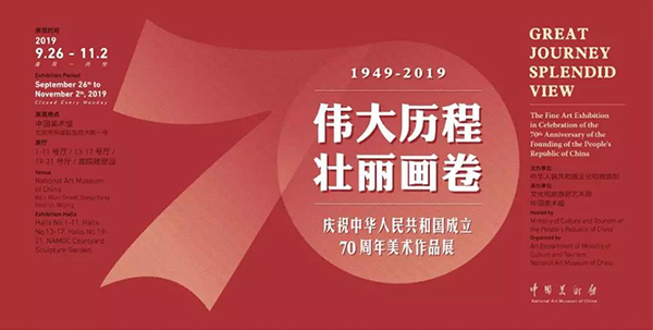 2019年9月26日,由中华人民共和国文化和旅游部主办,文化和旅游部艺术司、中国美术馆承办的“伟大历程 壮丽画卷——庆祝中华人民共和国成立70周年美术作品展”在中国美术馆开幕。展览以“伟大历程 壮丽画卷”为题,通过“浴血奋斗:人民解放之路”“艰苦奋斗:国家建设之路”“团结奋斗:改革开放之路”和“伟大梦想:民族复兴之路”四大篇章,展现了新中国成立70年波澜壮阔的伟大历程和辉煌成就。