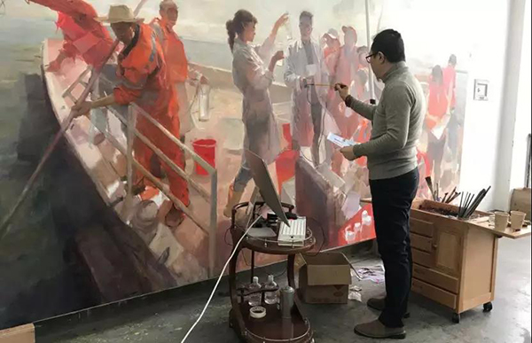 正是由于以上的学术保证和支持,中国美院创研班的所有作品得已顺利通过评审,最终在中国美术馆全部展出,这是大家不懈努力的结果。中国美术学院国家重大题材美术创作创新平台,在作品完成之后于微信公众号平台连载推出,每一位学员针对自己的作品,以文字的方式详尽阐释了整个创作过程的艰苦历程。尤其难能可贵的是在微信及创作谈推出的同时,研创班的两位班主任以及每一位学员,为其他学员的作品写下十万余字的追评文章,不仅形成“画里画外”的良性互动,也从创作实践者的角度进行探讨和交流,为今后的国家重大题材美术创作的研究留下宝贵的资料。今后,学校将做好“国家重大题材美术创作创新平台”建设,继续服务社会,培养高水平主题性绘画创作人才。