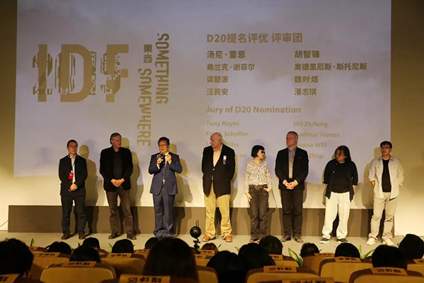 本届“D20提名”评优单元评审委员会中方主席、中国著名影视学者胡智锋先生代表大会评审团致辞。他表示:“纪录片在当今世界担当着非常独特的功能,首先是记录,西湖国际纪录片大会的主张就是‘我·纪录·事实’,纪录片是留存这个世界真相最直观、最生动的形式。第二是交流,纪录片不仅能留下历史和今天的真相,比起口耳相传、书写、文字的传播,纪录影像更适合作为一种交流的载体,让民族与民族,国家与国家,组织、团体之间的交流,因为真实的影像变得更加鲜活可信。最后一点就是共享,事实背后的文化艺术、社会内涵、人类情感和审美,都能通过纪录片展开丰富的共享,让人获得更多净化和提升。”致辞结束后,由D20评审团为“D20提名”评优单元的入围纪录片作者颁发入围证书,并合影留念。