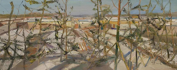 杨参军的油画色彩浓郁明亮、笔触直率利落、构图新颖自然,有意突出构造画面的意识。组织画面构成,营造色彩情意,不断寻找具象表现绘画的抽象美和绘画性。他将绘画的空间世界视为思想遨游的精神世界,寄托着他对人文历史、精神家园、个体生命的关切。他将西方艺术的“再现性”方法与东方艺术的“书写性”语言有机结合,彰显着深刻的思想性和深沉的历史感,进而使得其艺术魅力和学术思考纳入中国油画当代探索的文化自觉中来。