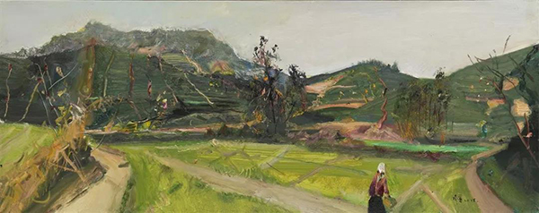 茶山 布面油画 60cm×150cm 2018年