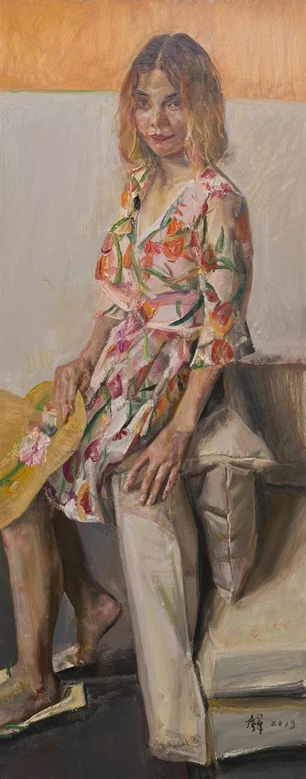 维族女孩 布面油画 150cm×60cm 2019年