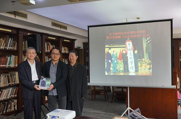 10月22日上午,庄希泉基金会秘书长吕文加先生一行访问我校,并向我馆惠赠《吕志先画传》。我校副院长高士明教授、原院长肖峰教授、图书馆长张坚教授和学院党政办公室副主任丰嫦、组织人事部副部长沈世龙会见了吕先生一行,并在我馆贡布里希—高居翰图书室举行了《吕志先画传》捐赠仪式和座谈会。