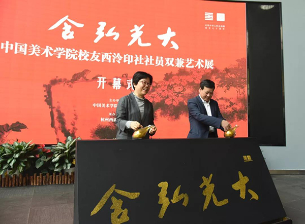 中国美术学院党委书记钱晓芳,中共杭州市委宣传部常务副部长、西泠印社党委书记、西泠印社副社长、社委会主任龚志南共同为展览启幕