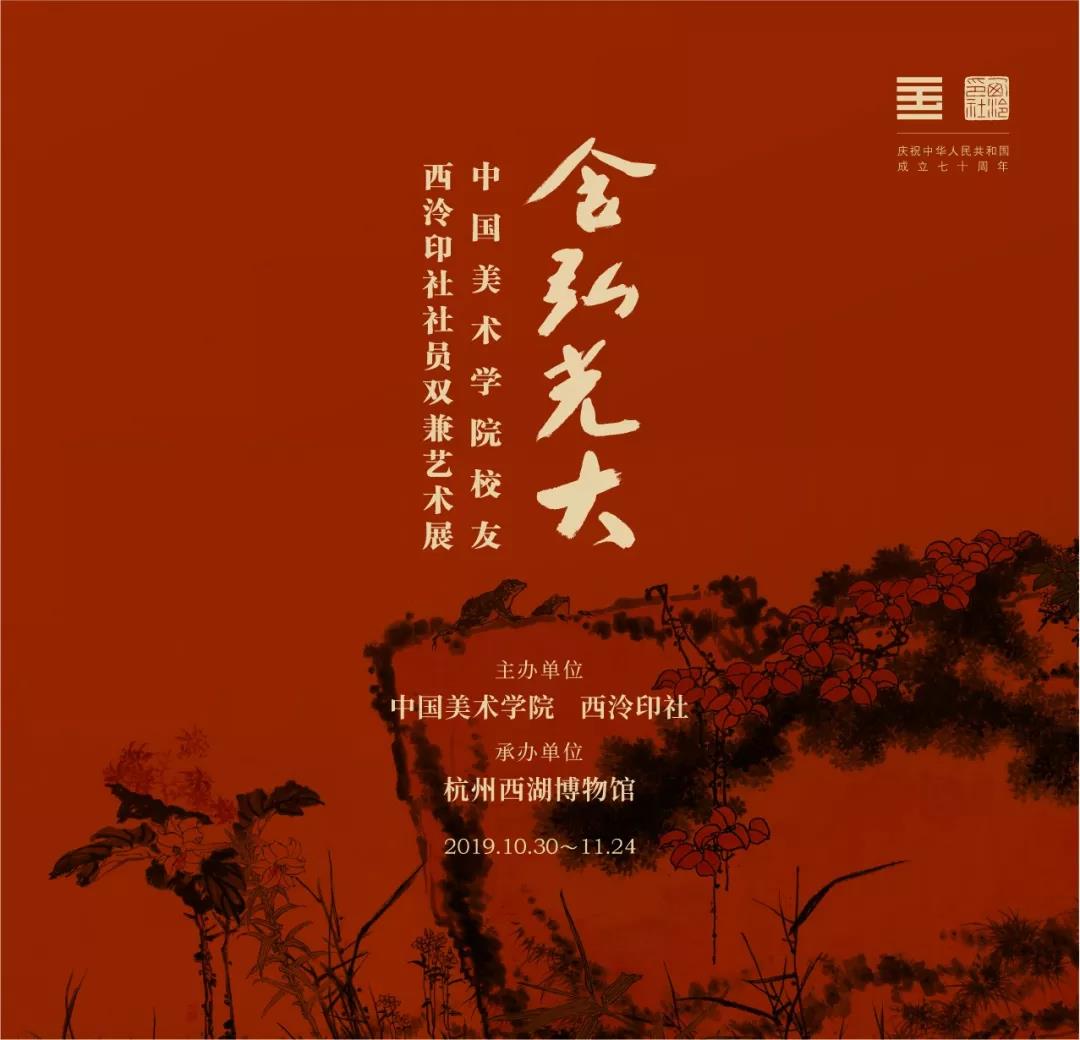 10月30日上午,「含弘光大——庆祝中华人民共和国成立70周年中国美术学院校友西泠印社社员双兼艺术展」在杭州西湖博物馆开幕。展览集中展出了114件兼具中国美术学院校友、西泠印社社员身份的前辈大家和当今艺坛名家创作的书法、国画、篆刻作品,为新中国七十周年华诞献上一份别有深意的贺礼。