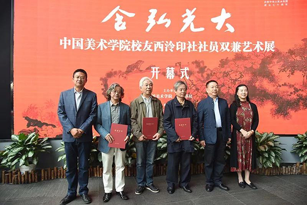 中国美术学院党委书记钱晓芳,中共杭州市委宣传部常务副部长、西泠印社党委书记、西泠印社副社长、社委会主任龚志南共同为展览启幕。中国文联副主席、中国美术学院院长许江为展览题写展名。中国文联副主席、中国书协副主席、西泠印社副社长兼秘书长、中国美术学院教授陈振濂,中国美术学院副院长高世名致辞,艺术家代表汪永江发言。出席开幕式的还有西泠印社名誉副社长吕国璋,西泠印社党委副书记、西泠印社常务副秘书长、社委会副主任王宏伟,西泠印社党委委员、社委会副主任秦陶 ,西泠印社副秘书长黄镇中,中国美术学院中国画与书法艺术学院院长张捷、副院长沈乐平,杭州西湖风景名胜区管委会副主任邓兴顺,杭州西湖博物馆馆长潘沧桑,以及30多位具有双兼身份的德高望重的艺术家代表叶尚青、丁茂鲁、张耕源、闵庚灿、马其宽、徐家昌、何水法、吴静初、吴宪生等。开幕式由西泠印社理事、中国美术学院党委委员沈浩主持。