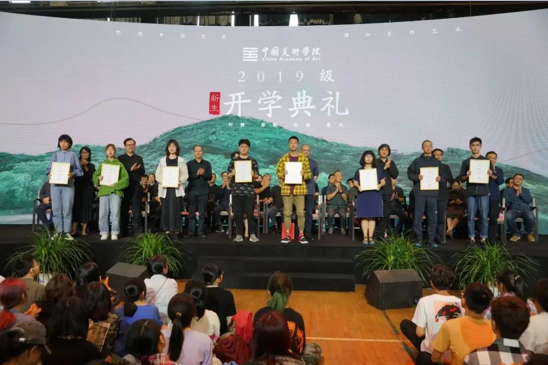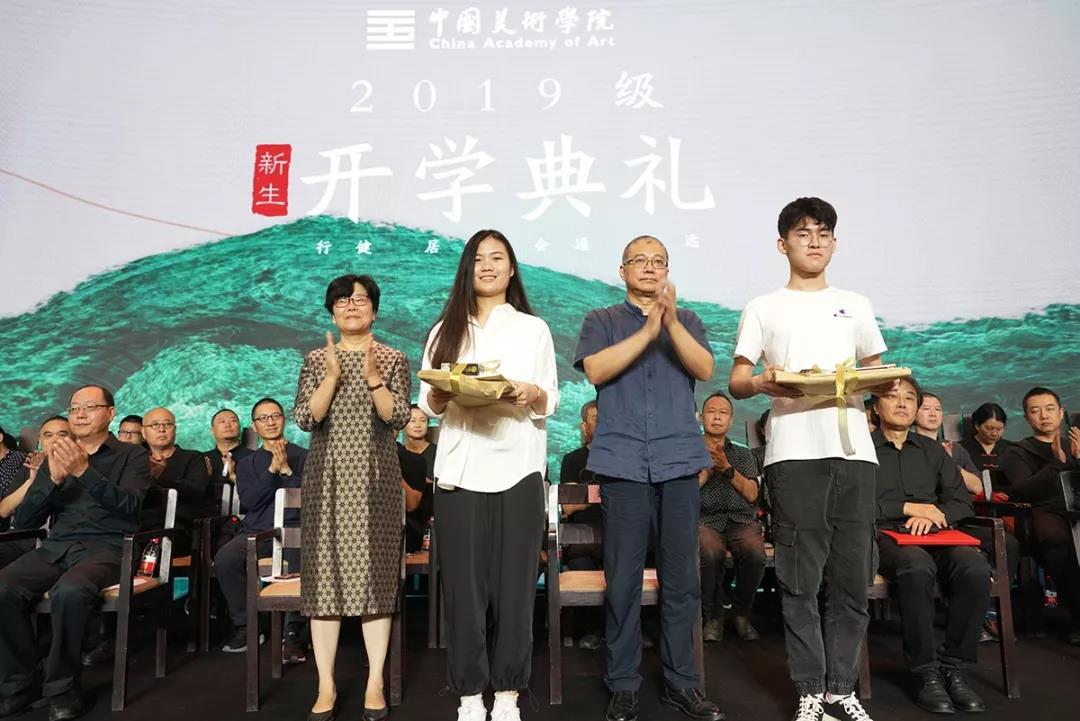 随后,副院长王赞宣读中国美术学院关于表彰2019级新生奖学金获得者的决定,校党政领导为获奖学生代表颁奖。学生代表上台朗诵中国美术学院校训释文,激昂振奋之情感动现场所有师生。