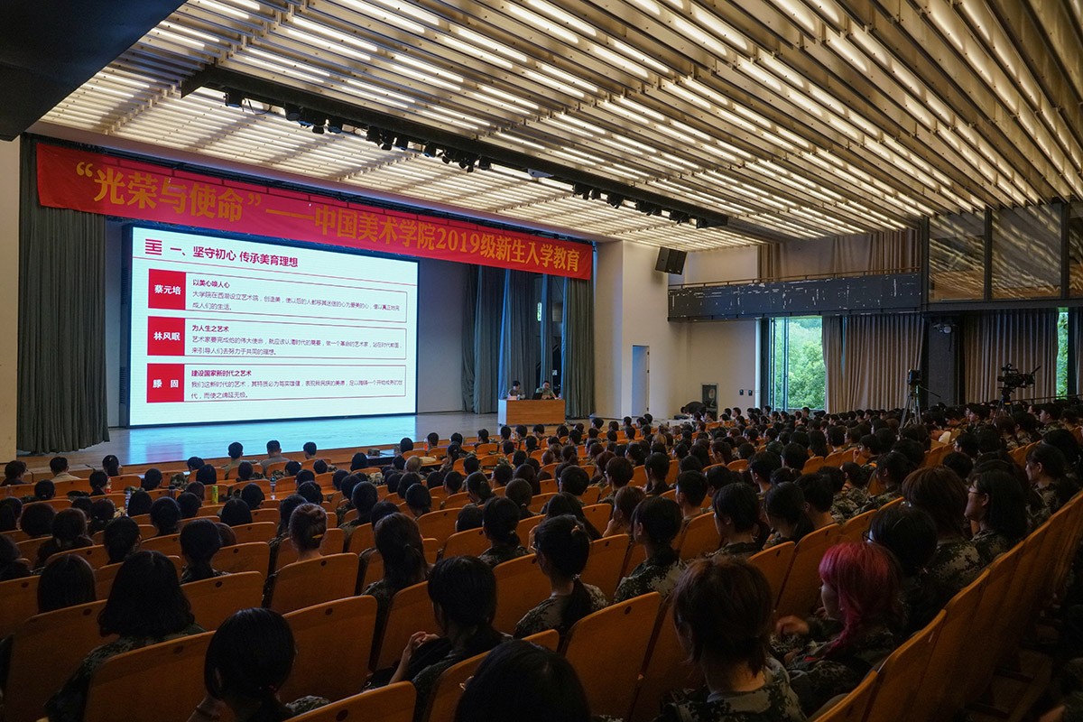 今天,1842名2019级本科新生来到国美,成为这里的新主人。我代表学校全体师生员工,欢迎你们加入国美大家庭!大学四年是人生最美好的时光,美好的年华美好的时光,在心仪的大学最美的校园相遇,是最幸福的。你们将在这山水相依的艺术殿堂中找到一生的志向,结识一辈子的挚友,度过青春的黄金期,开启崭新的人生画卷。今天,是你们知己知校的第一课,我将与大家一起回望国美初心,了解今日国美,迎接属于你们的美好未来。
