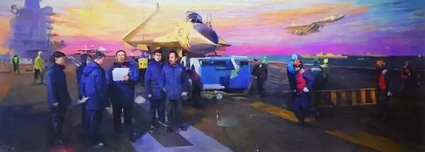 航空报国的楷模——罗阳(油画) 300×800厘米 2017年 张俊明