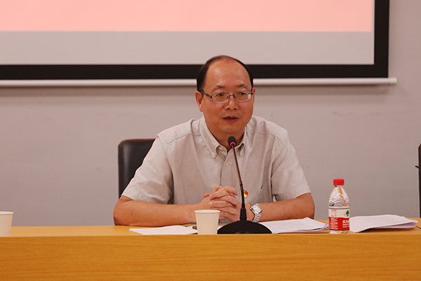 党委副书记胡钟华作《聚焦主题主线,切实抓好党支部主题教育》专题讲话,领学了中央和省委“不忘初心、牢记使命”主题教育第一批总结暨第二批部署会议精神,指出党支部不光是党的政治建设的基础,也是学校各项工作推进的基础,并对党支部书记提出四点要求:一是要抓好责任落实,切实担负起第一责任人职责,以主题教育为契机,切实加强党支部自身建设,保质保量完成各项工作任务;二是要加强支部组织建设,党支部书记要担负起党建与学科双带头人职责,提升自身素质;三是要加强作风建设,师德师风建设、学风建设,以主题教育为契机,促进学校中心工作发展,全力做好各方面工作,确保我校主题教育取得扎实成效;四是加强正面宣传,学习身边的先进典型,同时发挥学校专业优势,梳理有效做法,打造我校主题教育特色与亮点。