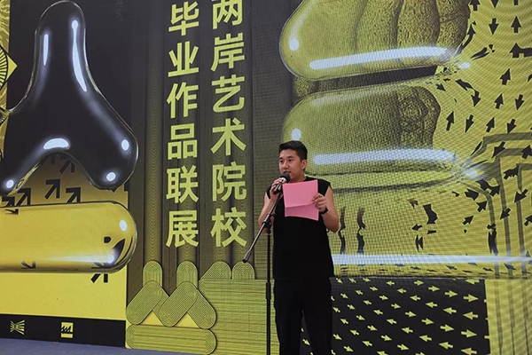 台湾艺术大学美术学院院长陈况怡致辞,她说台湾艺术大学与中国美术学院渊源深厚、交流紧密。此次展览集结了两岸最为精英的毕业学生的作品,展示了两岸蓬勃的创作能量。她希望在未来展览可以举办更多届,继续传承延续下去,呈现更多两岸年轻学子的创作成果,展示他们对世界和艺术的不同看法。台湾设计联盟理事长、台湾师范大学前副校长、亚洲大学视觉传达设计学系讲座教授林磐耸作为美院30多年的老朋友在开幕式上致辞。他表示此次展览是首次将两岸共17所艺术院校的200位师生汇聚在一起,不禁让其想起被誉为“现代建筑的最后大师”的贝聿铭在接受采访被问及如何成为一位大师时曾说过:“我只是在适当的时间出现在适当的地方,陪历史走那么一段路”。今天两岸师生正是在恰当的时间和地点,创造了一段历史。
