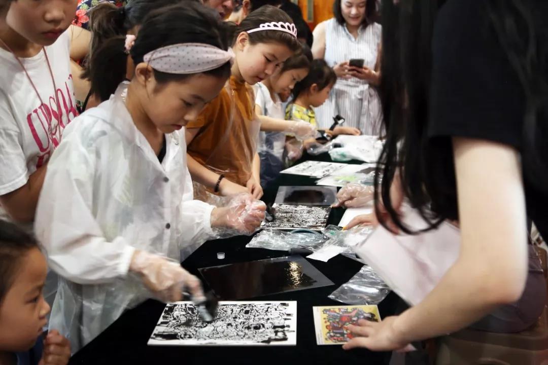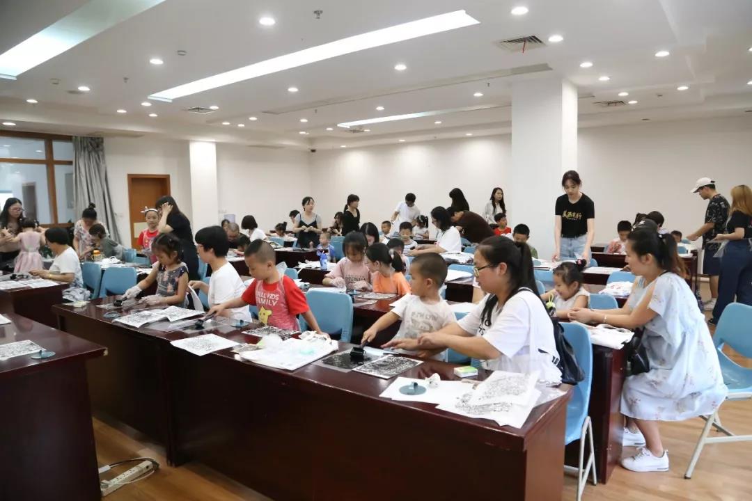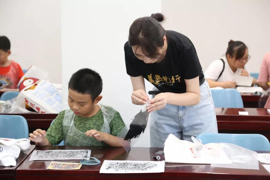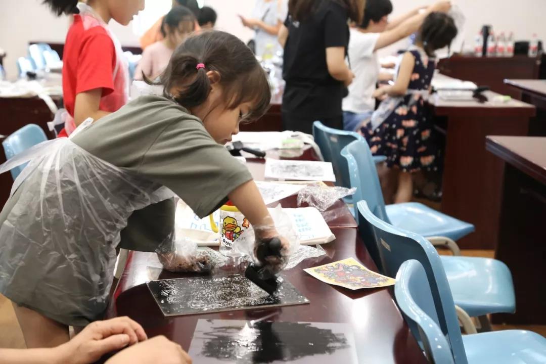 次日,因公教活动备受欢迎,实践小队决定扩大活动规模,嘉兴市图书馆为小队提供了教室,以班级授课的形式继续开展版画拓印体验活动,本次活动获得了图书馆、家长、小朋友的一致好评。与此同时,导览小组亦在展厅为观众提供讲解与帮助。在实践中,同学们有付出亦有收获,做到了在实践中学习,在实践中合作,在实践中成长,是一次可贵的暑期实践经历。