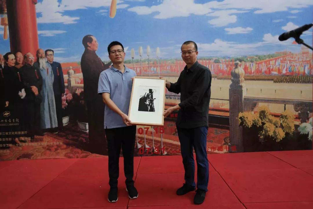 开幕式上,中国美术学院马克思主义学院院长丁红旗代表学校向嘉兴市图书馆赠送了由著名版画家、中国美术学院原教务长张怀江创作的版画《支柱》的复制品。希望以此为纽带,让艺术与阅读更好地结合起来,让艺术走出美术馆,走近广大读者和群众,开设更多面向全社会的美育公开课,为社会提供更丰富的精神营养。