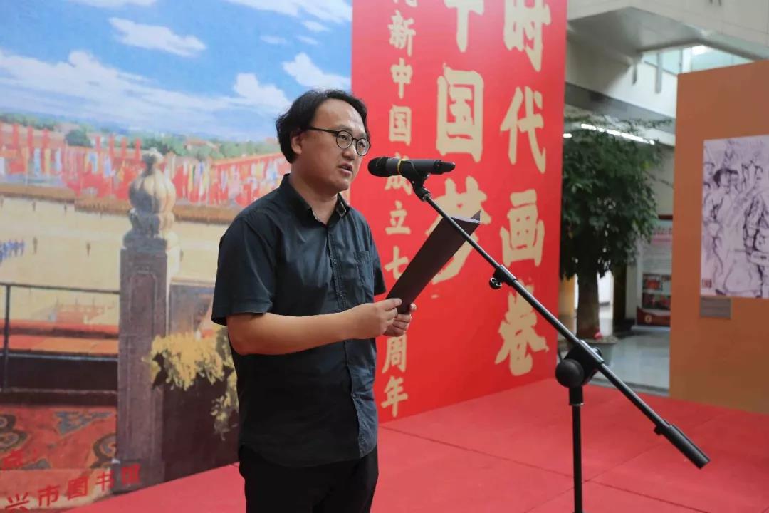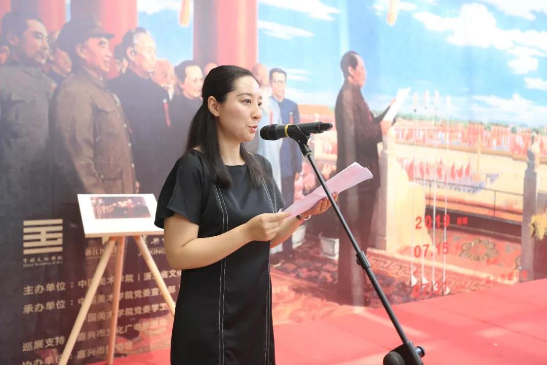 嘉兴市文化广电旅游局副局长钱永忠致辞并预祝本次展览顺利举办。他表示,嘉兴有着深厚的历史底蕴和文化积淀,同时也是「红船精神」的发源地。此次展览来到嘉兴举办,用艺术作品再现重要的历史事件,具有重要的教育意义。