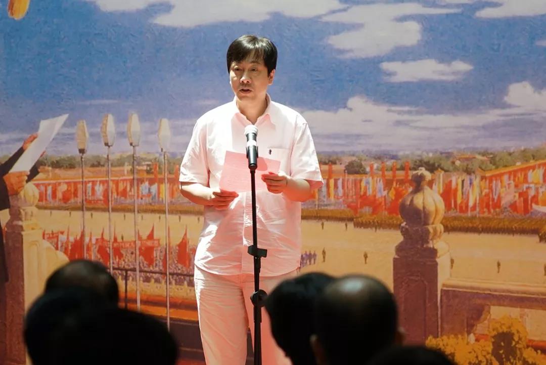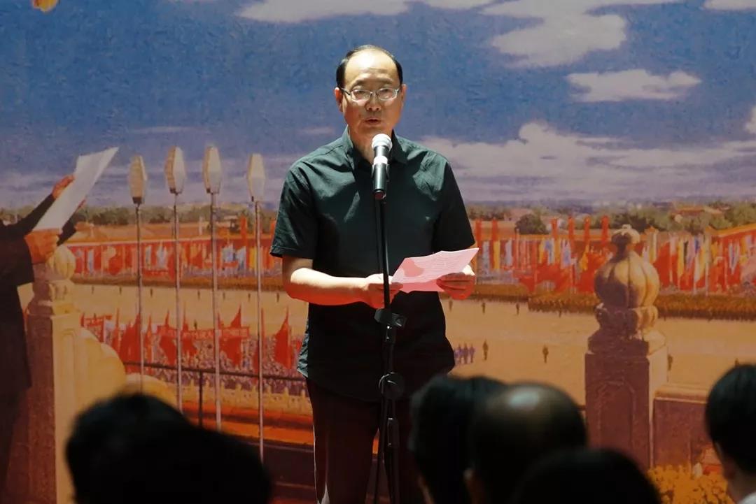 胡钟华在开幕式上讲话,他表示120余幅主题性艺术作品,生动展示了新中国成立70年来的光荣历程和伟大成就。相信此次展出的具有强大艺术性、感染力的优秀作品,能切实发挥艺术立德树人、培根铸魂的作用,成为爱国主义教育、理想信念教育、革命传统教育的生动教材,进一步激发爱国热情,广泛凝聚奋斗力量。