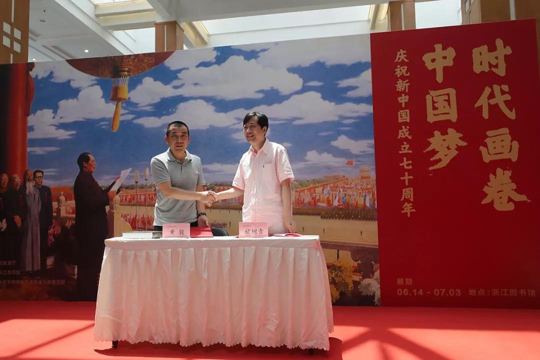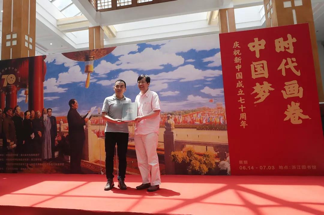 为庆祝中华人民共和国成立70周年,中国美术学院联合浙江省文化和旅游厅共同举办“时代画卷中国梦”大型主题展览暨“我和我的祖国”主题教育活动。本次展览由中国美术学院党委宣传部、浙江图书馆、中国美术学院党委学工部、中国美术学院艺术管理与教育学院联合承办,由嘉兴市图书馆、宁波市图书馆协办。展览于6月14日上午10点在浙江图书馆举行开幕式。