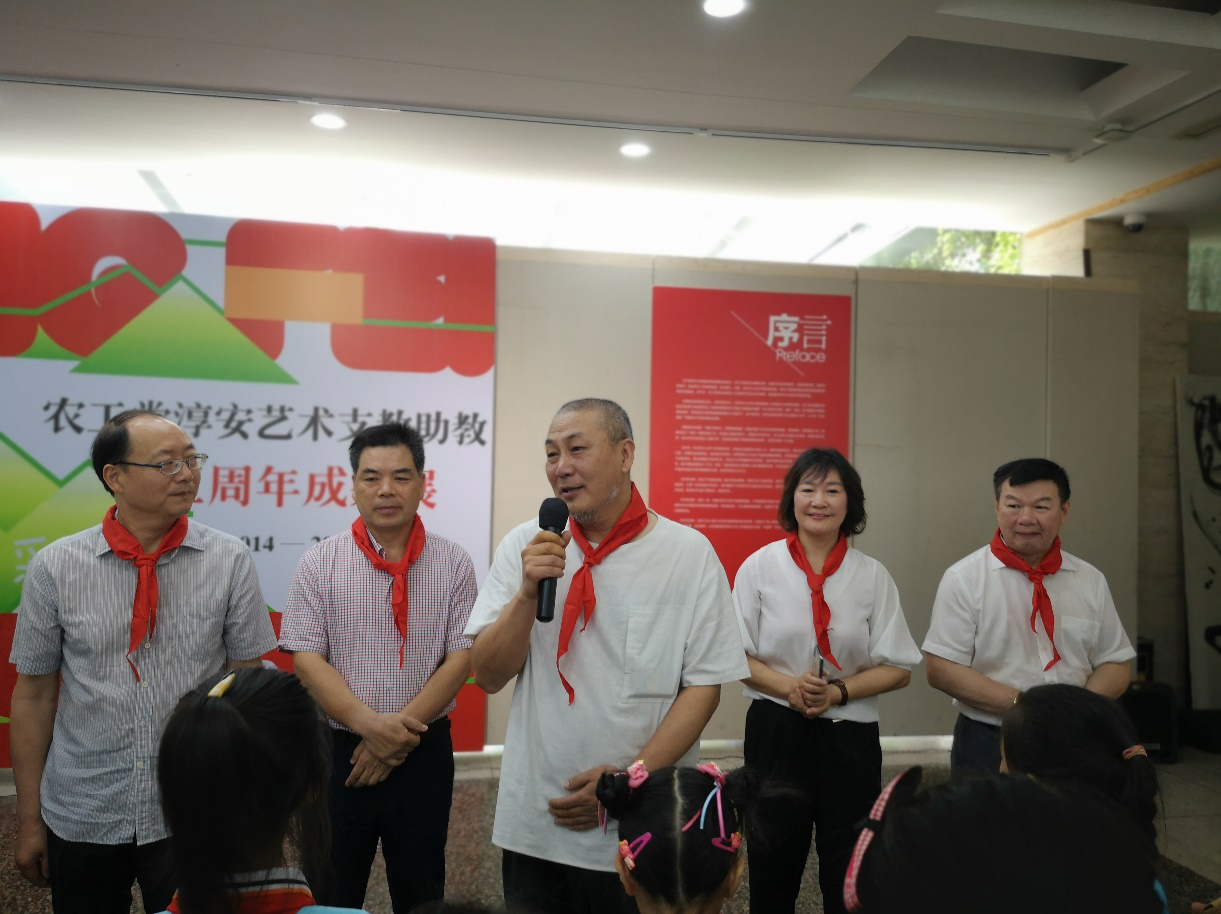 中共中国美术学院委员会副书记胡钟华表示成果展作品充满童趣、生动活泼和充满对美好生活的向往。他回望了五年来农工党省委和中国美术学院农工党支部的支教活动,肯定了农工党发挥自己的成员优势,以淳安支教为载体,持之以恒开展活动,反映了这五年农村振兴、文化振兴的政策,贯彻落实习总书记关于文化发展,文艺发展和加强美育工作的重要指示。