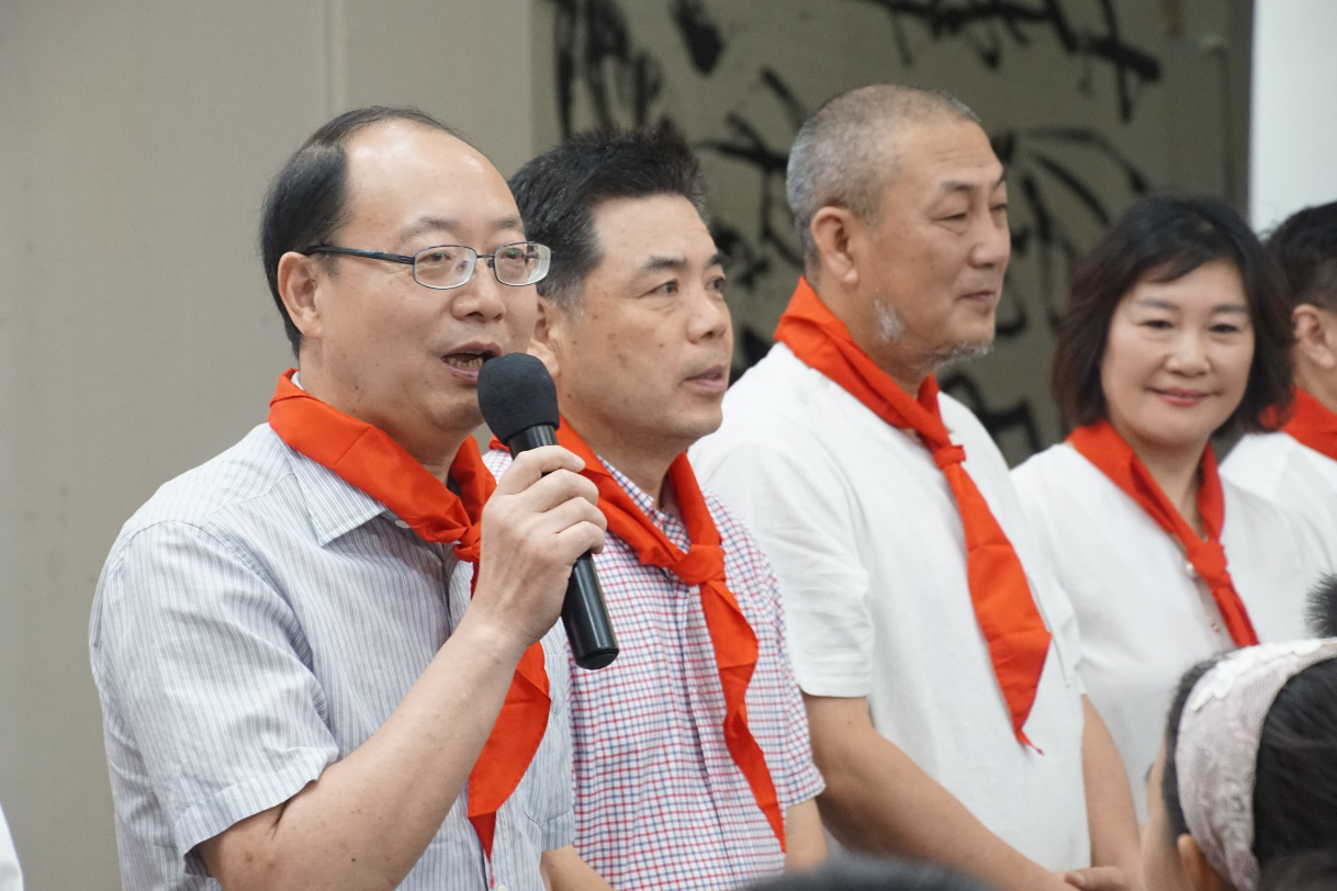 农工党浙江省委会主委罗建红总结发言,他首先肯定了支教项目连接了社会各个群体,从为社会提供服务、参政议政的农工党,到进行艺术教育的中国美术学院师生,淳安教育相关部门,以及最重要的龙川小学师生。他还肯定支教项目用艺术连接了这个世界,让孩子们用纯善的心感知世界,培养了他们的人文关怀。孩子们是中国发展的未来,对孩子们心灵的熏陶才有中国未来的美丽健康。