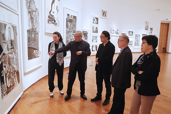 朱国贤在雕塑与公共艺术学院,详细了解国家重大历史题材雕塑作品创作情况,考察了当代纤维艺术研究所,并深情回忆起1986年对万曼教授的采访;在跨媒体实验室,仔细询问媒体实验、媒介展演等情况;在中国国际设计博物馆,认真观看了包豪斯现代设计艺术馆馆藏展品。朱国贤一行还参观了《野草——献给五四新文化运动一百周年》展览。