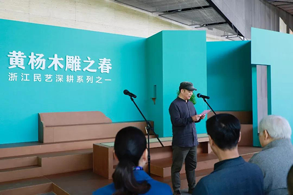 杭间在开幕式上说,“黄杨木雕之春——浙江民艺深耕系列之一”展览,希望今天的创作回到民间、民间的生活,回到黄杨木雕作为生活的艺术的质朴与健康。在作品选择上选择了一些有感于生活、历史、民俗风物的,健康向上的的代表作品。在这样的情境里,让民艺传承回到当代的生活、关注当代的生活。希望通过浙江民艺深耕系列展览的尝试,为黄杨木雕的创作迎来一个春天,在新的时代焕发出勃勃的生机。民艺博物馆不仅研究中国传统的民间、民族艺术,同时希望对其进行重新挖掘与研究,为它的现代化发展寻找一种出路,所以博物馆既是一个平台也是一个推进创作的重要力量。我校是一所世界知名的美术学院,因为坐落于浙江杭州,将以推动浙江的民族民间艺术、浙江的设计、浙江的美术文化发展为己任,通过今天这个展览,能为浙江民艺在二十一世纪的进一步发展贡献一份力量。